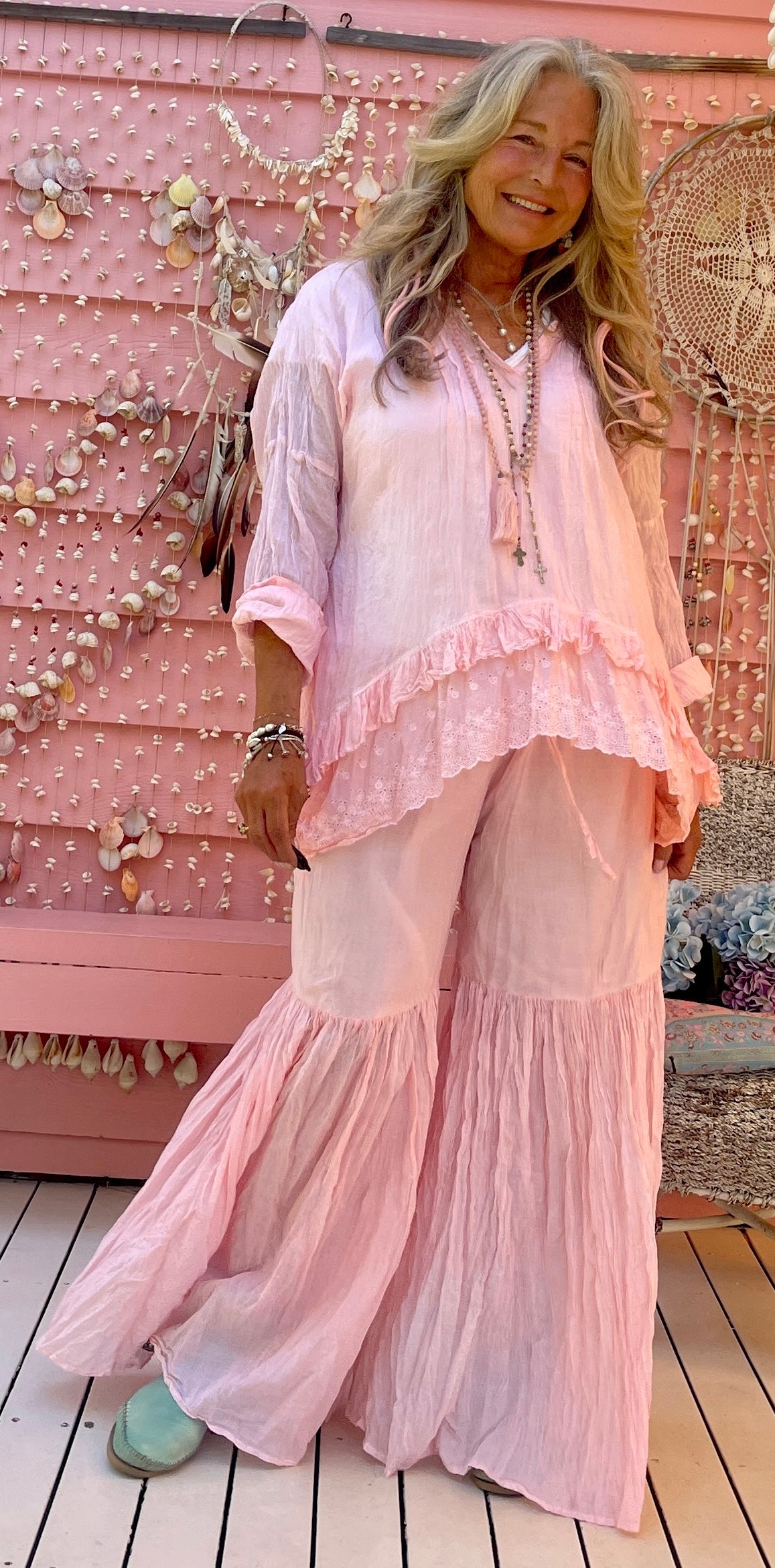 The Summer Gypsy Walkabout is made from natural cotton. The texture is divine and has a beachy stonewashed feel that gets softer and cosier with every wash.