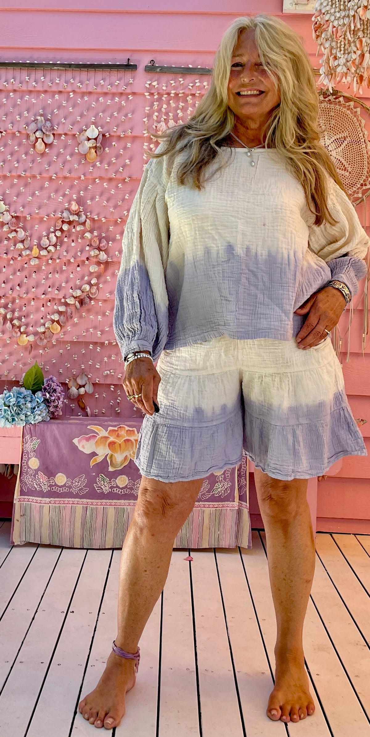Made of natural, waffle cotton and bigger than previous years. These Sweety Shorts are the best fit ever. They're too cute with pockets, a flattering flat front, and elastic back. Plus, they're the most flattering shorts I've ever worn with a skirt-like flare. Trust me, these shorts are not only comfy and cute, they'll have you looking adorable. Each piece is unique and hand dyed in Dip-Dye, Tie-Dye and Plain colours too.