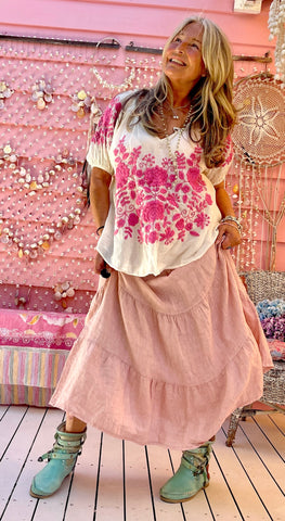 Lovingly hand-embroidered double cotton Lounge Pants with drawstring and elastic waist, deep pockets and a lovely flowy yet comfortable and flattering shape. These are truly wearable art. Wear them with a simple shirt or tee and breeze around looking pretty as a picture. These unique beauties are limited so be quick. Made from our fabulous double waffle cotton and hand dyed and hand- embroidered